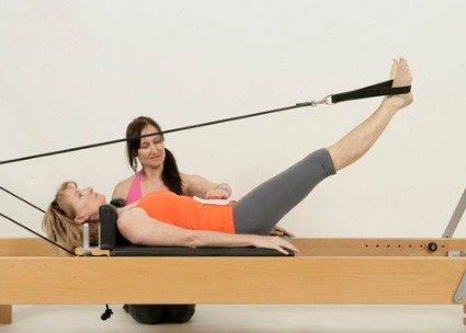 – 리포머에 누어서 스트랩을 발에 걸고 목은 90도가 되도록 만들어 줍니다.